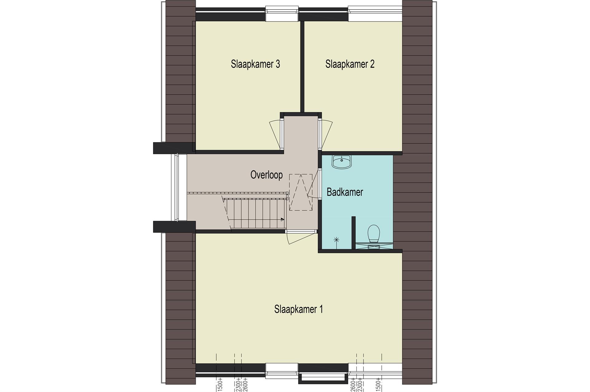 Breedte woning:7,1 - 7,7 - 8,3 - 8,9 - 9,5 meterLengte woning:10,1 - 11,3 - 12,5 - 13,7 - 14,9 meter